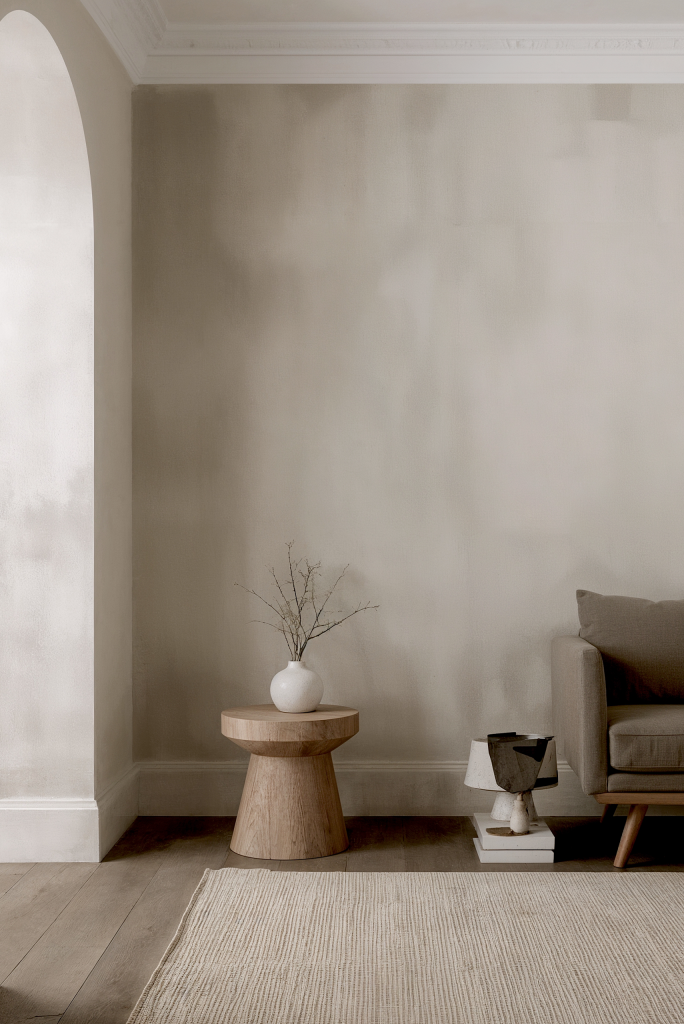 Lime-based decorative coating that beautifully replicates the textured, weathered appearance of natural travertine stone. This elegant Venetian plaster finish is crafted with natural binders and enriched with marble grains, resulting in a rustic, stone-like texture that exudes sophistication.
