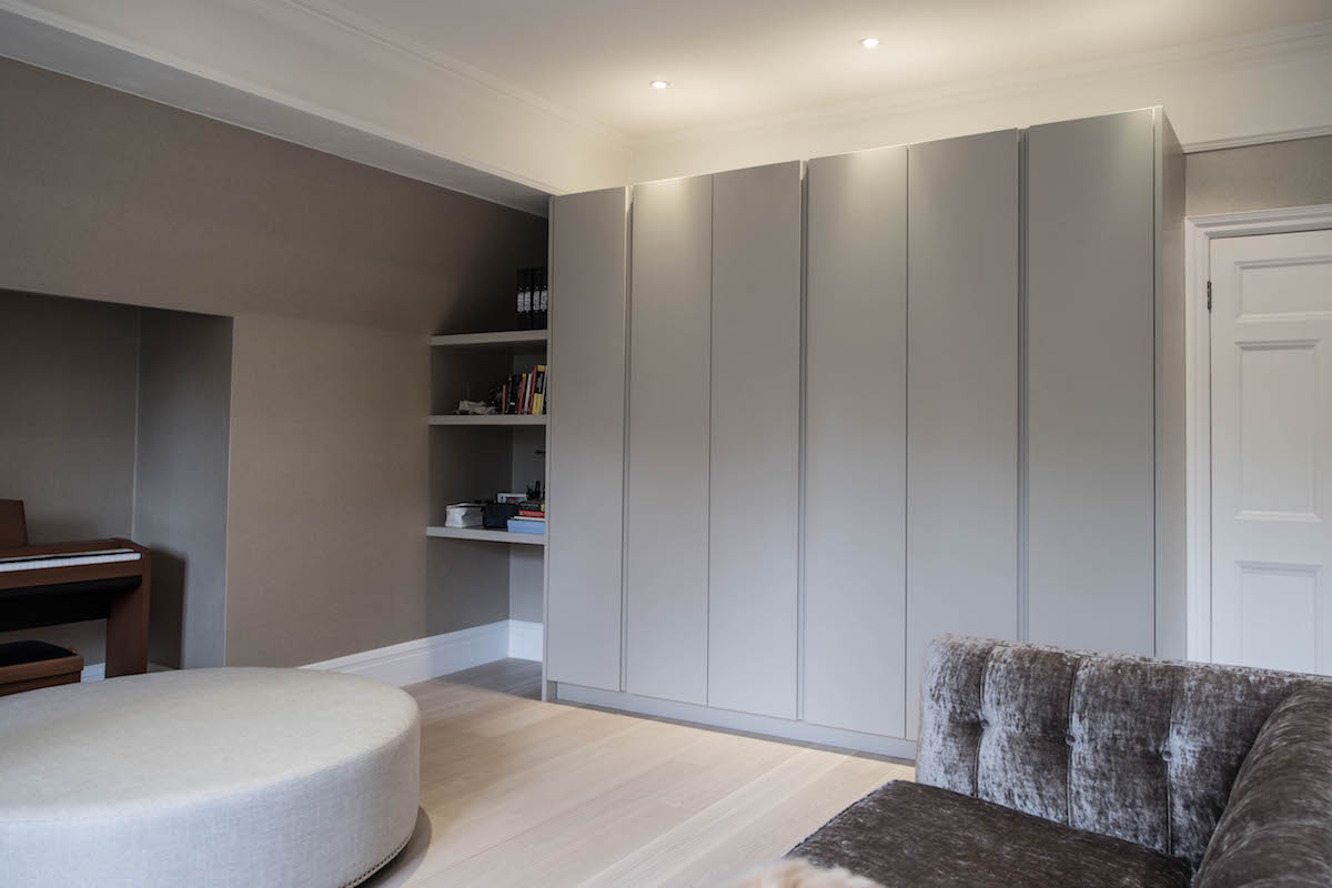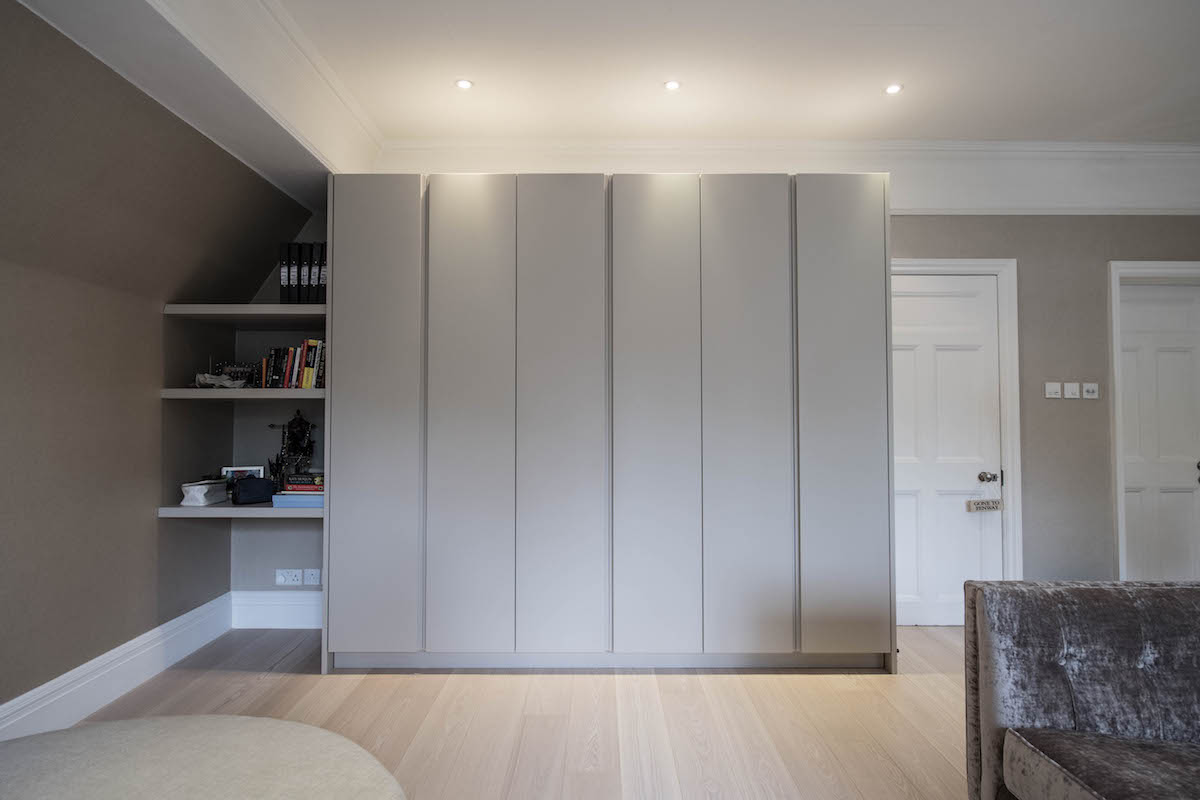 Earls Court – bedroom Supply and installation of Modula S Inset wardrobe with bespoke made storage side shelves. Date: November10, 2022