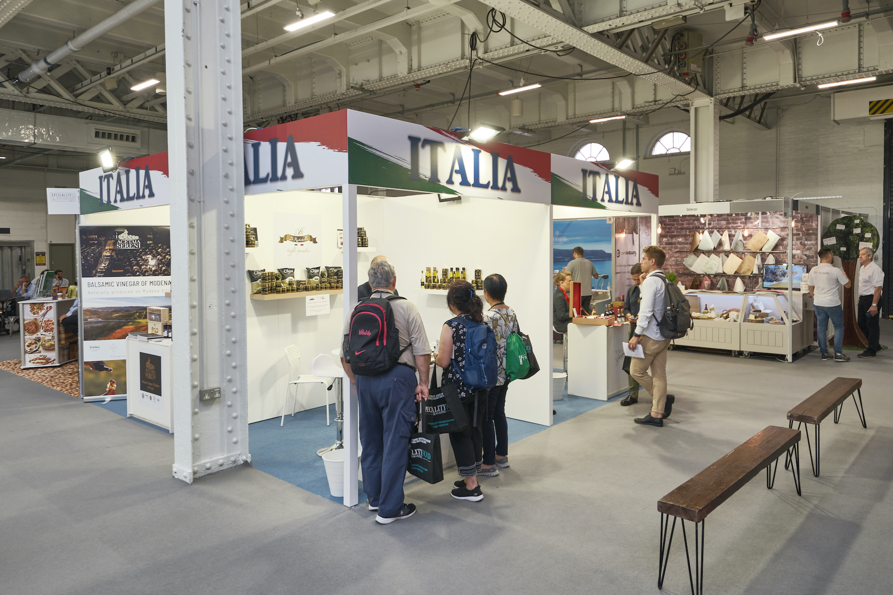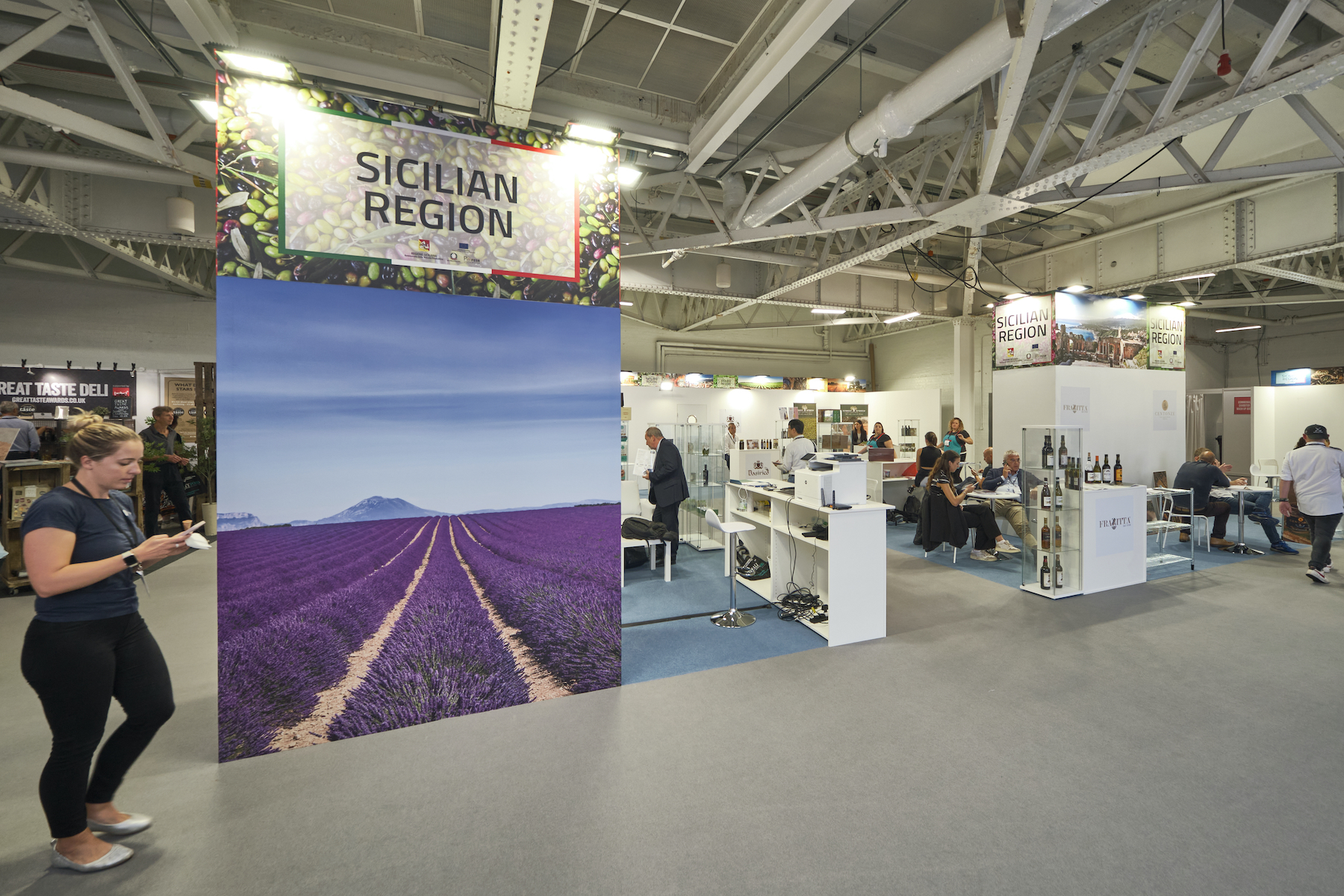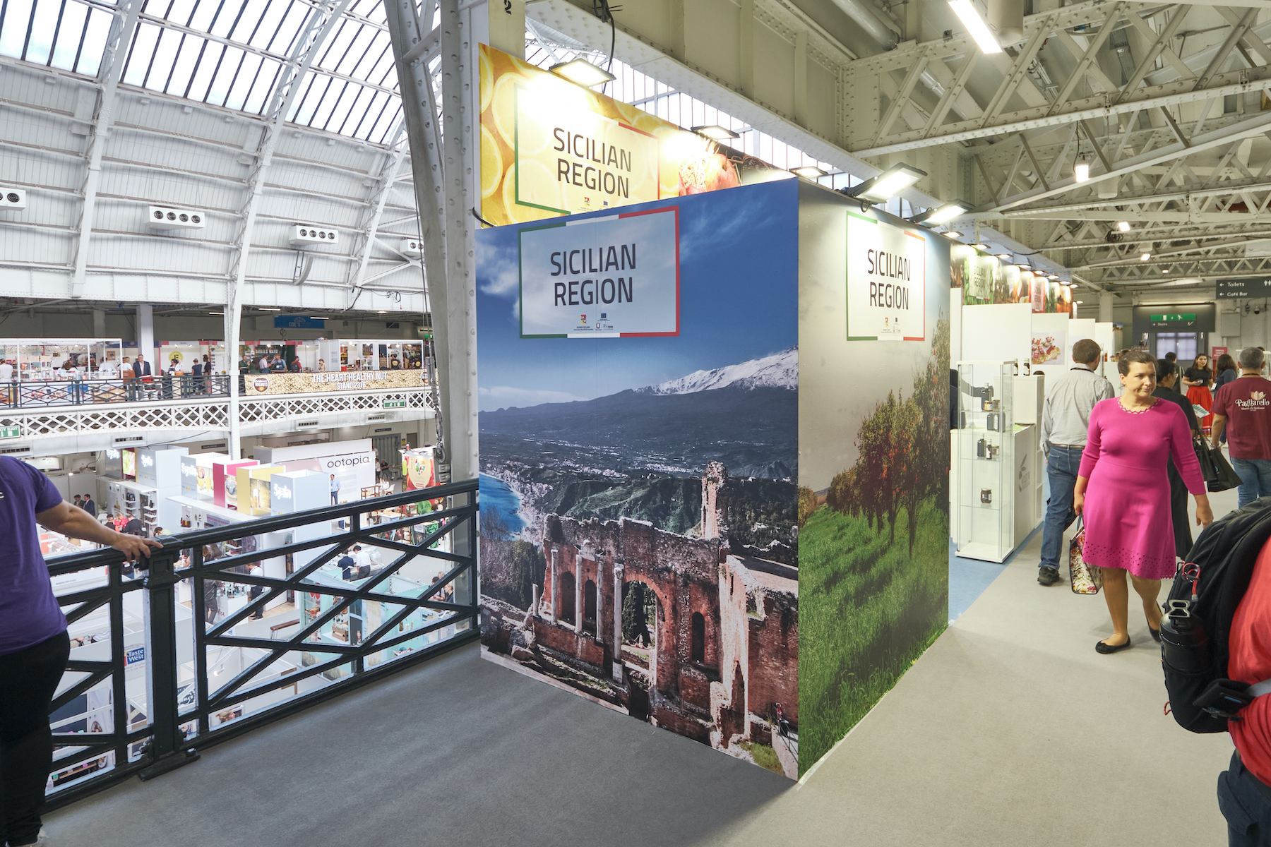 Food Exhibition – Kensington Olympia Full design and build of 250 sq/m exhibition display stands. Whole event was organized by Italian goverment to promote Sicily region food. Date: October11, 2021