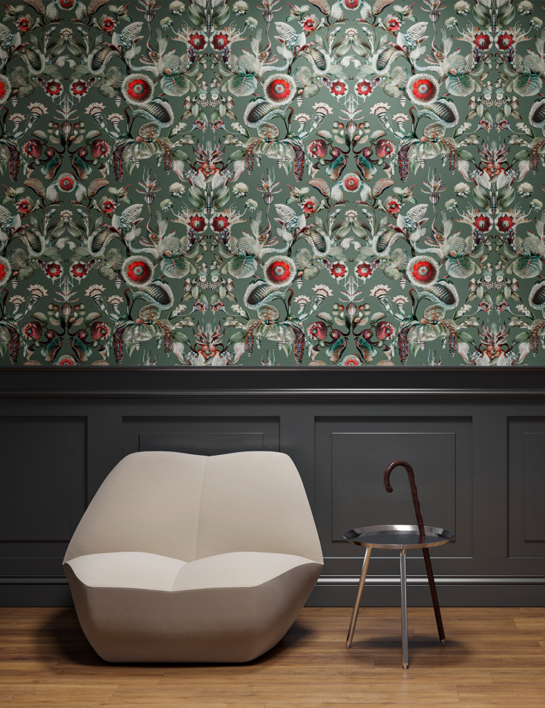 Step into the Green House, a realm of quiet and romantic sophistication – a tapestry of refined and elegant flora and fauna. Here, the Coccinella Bella, Woodblock Beetle, Silk Bombis, Lacy Longlegs and Techno Bee find sanctuary amidst their chosen greenery. Together, they created a wondrous and tactile world. This world is captured in the Green House Wallcovering Collection. With an air of quiet sophistication and refined elegance, the Green House exudes the ethereal beauty reminiscent of a Victorian conservatory. Discover floral yet abstract patterns in natural colours, offering a sophisticated and tactile experience for your walls. The collection is crafted with high-quality and original materials such as wood veneer, jacquard fabric, bouclé fabric and silk textures. Each wallcovering promising a sensory journey through sophisticated, original designs.